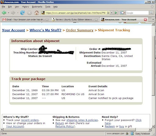 I had ordered a few books from Amazon and i was tracking the order. This is what their page had got to say.. Dec 31st, '69? What, do Amazon shipments travel back in time?